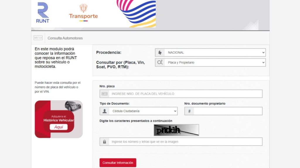 El portal del RUNT permite consultar comparendos y el historial de un vehículo con solo ingresar la placa o el número de documento. Los pasos son: